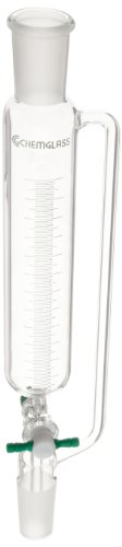 Chemglass CG-1712-02 Glass Cylindrical Style Graduated Addition Funnel, with 2mm PTFE Stopcock, 125mL Capacity