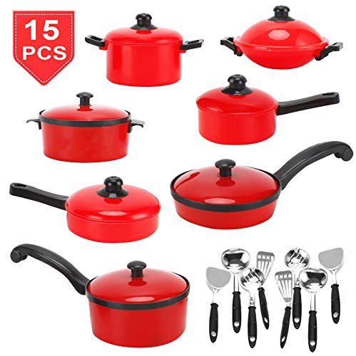 Liberty Imports 15 Piece Miniature Pots and Pans Kitchen Pretend Play Cookware Set - Toy Kitchen Cooking Accessories with Utensils Playset for Kids