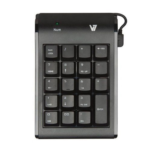 V7 Space Saving Ergonomic Spill Resistant 19 Key USB Numeric Keypad for Windows Desktop PC Notebook Laptop (KP0N1-7N0P) - Black