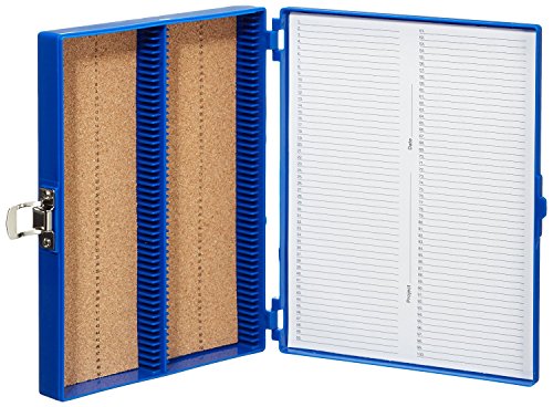 Heathrow Scientific HD15994A Blue Cork Lined 100 Place Microscope Slide Box, 8.25" Length x 7" Width x 1.3" Height