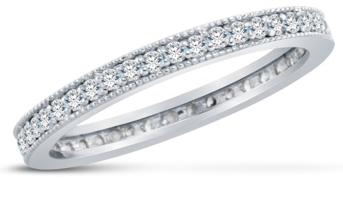 Size 6 - 3mm Small Thin Solid 14K White Gold Channel Set Round Brilliant Cut Highest Quality CZ Cubic Zirconia Eternity Anniversary or Wedding Ring Band (Available in sizes 5 , 6 , 7 & 8)