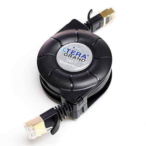 Tera Grand - Premium Cat-7 10 Gigabit Ethernet Retractable Cable for Modem Router LAN Network Playstation Xbox, 1.5Meter (4.9 Ft.) in Retail Package