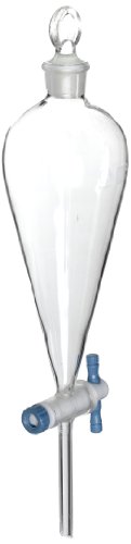 American Educational 7-850250 Bomex Glass Conical Separatory Funnel, with PTFE Stopcock, 250mL Capacity