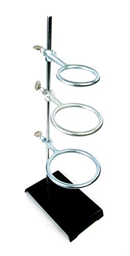 American Educational Stamped Steel Support Ring Stand with 3 Rings, 8" Length x 5" Width Base Size