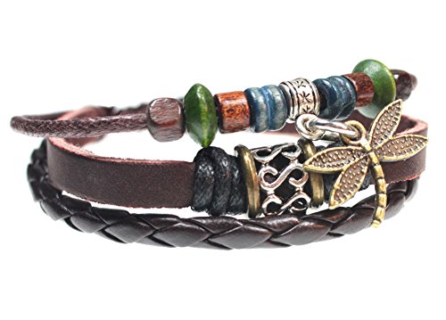 Beautiful Silver Jewelry Dragonfly Leather Zen Bracelet, Fits 6 to 9 Inches in Gift Box