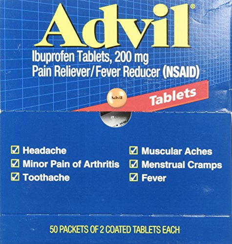 Advil Pain Reliever, Individual Sealed 2 Tablets in a Packet (Box of 50 Packets) Total 100 Tablets. (200 mg each tablet)