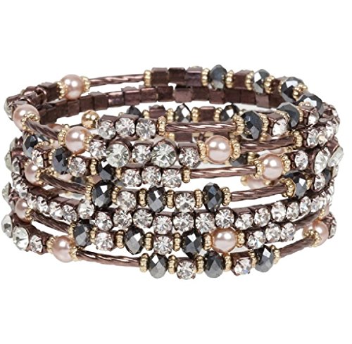 Dark Grey Clear Crystal Chocolate Finish Simulated Pearl Wrap Bracelet