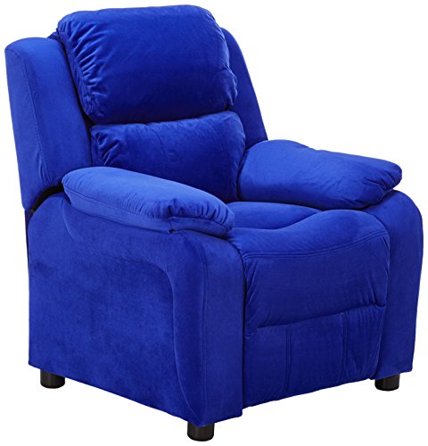Flash Furniture Deluxe Padded Contemporary Blue Microfiber Kids Recliner with Storage Arms