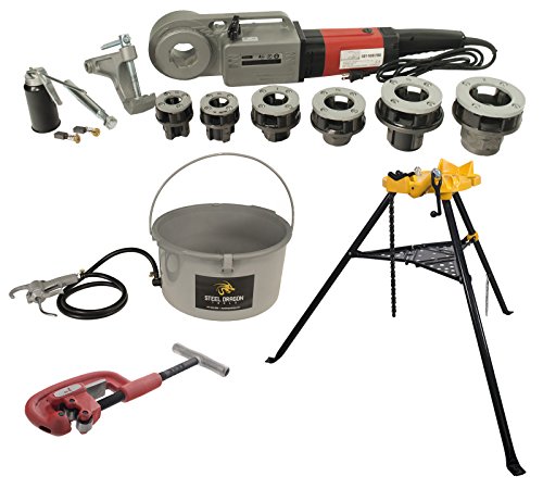 Steel Dragon Tools 600 Pro Hand-Held Pipe Threader 460 Chain Vise 418 Oiler and 2A Cutter fits RIDGID12-R Dies