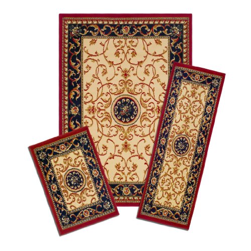 Achim Home Furnishings Capri 3-Piece Rug Set, Wrought Iron Medallion