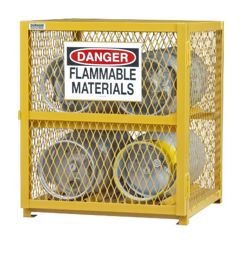 Durham Steel/Iron Horizontal Cylinder Storage Cabinet, EGCC4-50, 4 Cylinder Capacity, 30" Length x 30" Width x 35" Height, Yellow Powder Coat Finish