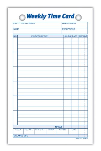 Adams Weekly Time Cards, 1-Sided, 4.25 x 6.75 Inches, White Index Bristol Paper, 100 Cards Per Pack (9616ABF)