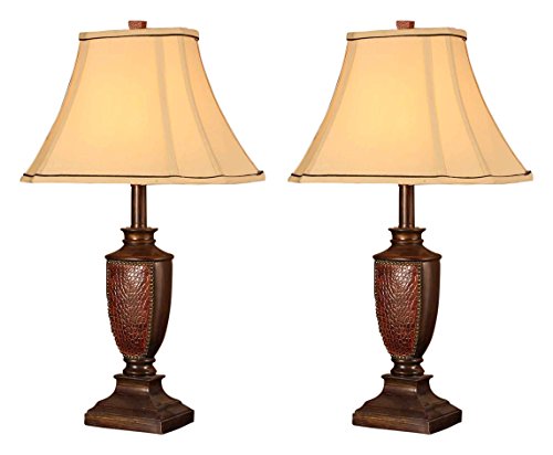 King's Brand L2601 Fabric Shade Table Lamps, Brushed Red Finish, Set of 2