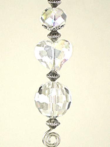 All Glass Rear View Mirror Car Ornament Charm: Light-Catching Asymmetrical Crystal Clear Heart & Silvery Accents