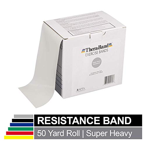TheraBand Resistance Bands, 50 Yard Roll Professional Latex Elastic Band For Upper & Lower Body & Core Exercise, Physical Therapy, Pilates, Home Workout, Rehab, Silver, Super Heavy, Advanced Level 2