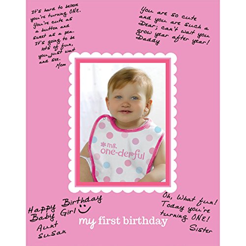 Amscan 1st Birthday Girl Autograph Photo Matte Party Supplies, 14" x 11", Pink