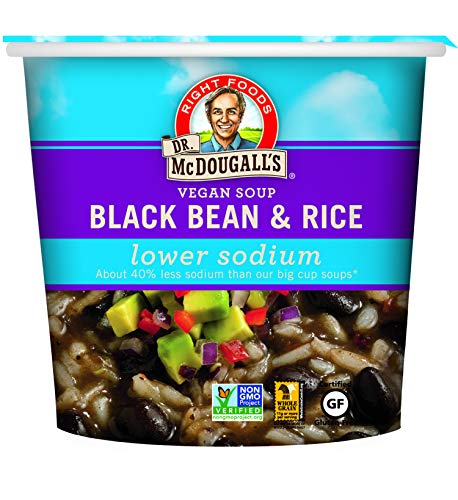 Dr. McDougall's Right Foods Vegan Lower Sodium Black Bean and Rice Soup, 1.6 Ounce Cups (Pack of 6) Non-GMO, No Added Oil, Whole Grain, Paper Cups From Certified Sustainably-Managed Forests