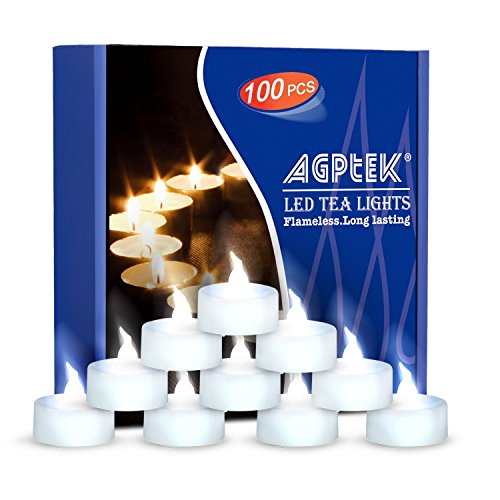 AGPtEK Tea Lights,100 Pack Flameless LED Candles Battery Operated Tealight Candles No Flicker Long Lasting Tealight for Wedding Holiday Party Home Decoration(Cool White)