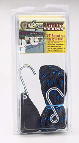 Rope Ratchet 10025 3/8" Block and Tackle Ratchet Tie Down, Rope Hoist Pulley Hoist, with 15' Solid Braided Polypropylene Rope, 250lb Weight Capacity
