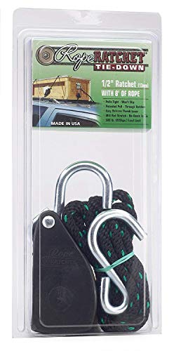 Rope Ratchet 10030 1/2" Rope Pulley Rope Hanger, with 8' Solid Braided Polypropylene Rope, Locking Pulley, 110lbs Weight Capacity