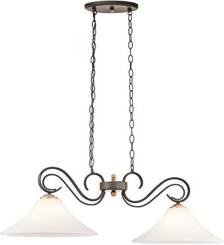 Kichler 42991OZ Courtyard 2-Light Island Pendant, Old Bronze Finish with Satin Etched White Glass