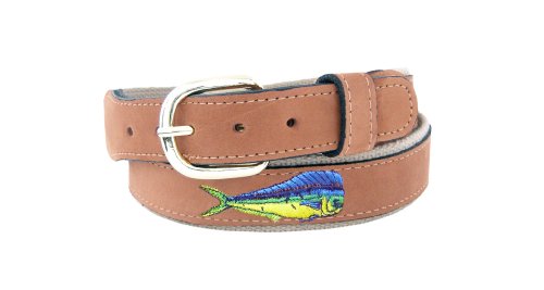 ZEP-PRO Men's Tan Leather Embroidered Dolphin Belt