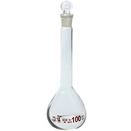 100ml Volumetric Flask, 3.3 Boro Glass, Class A, Ground Stopper, Karter Scientific 213W5 (Pack of 2)