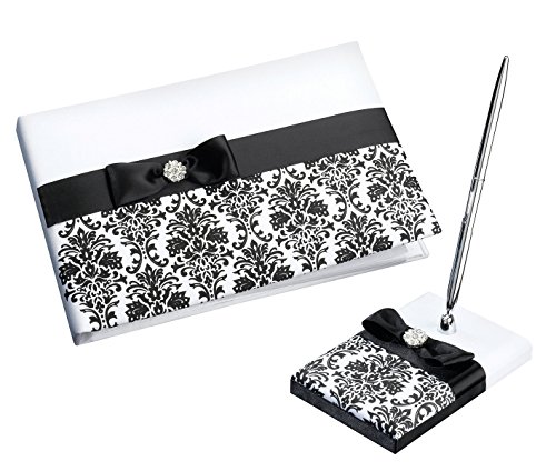 Lillian Rose Black and White Damask Wedding Guest Book Pen Set