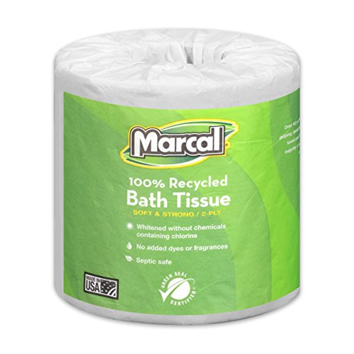 Marcal Toilet Paper 100% Recycled - 2 Ply White Bath Tissue, 336 Sheets Per Roll - 48 Rolls per Case Green Seal Certified Toilet Paper 06079