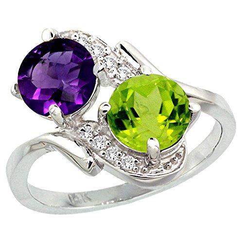 10K White Gold Diamond Natural Amethyst & Peridot Mother's Ring Round 7mm, size 7