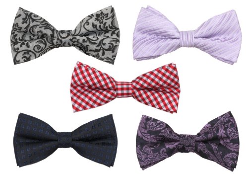 Bundle Monster Mens Tuxedo Solid Patterned Adjustable Neck Bowtie Bow Tie 5pc Assorted Lot Set - #4