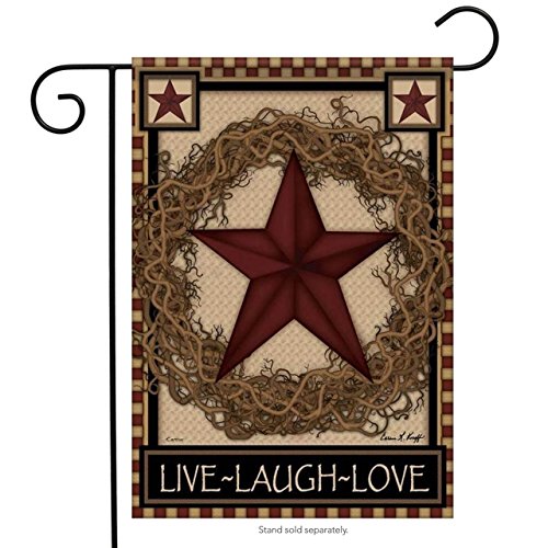 Country Primitive Barn Star Wreath Live Laugh Love Double Sided Garden Flag