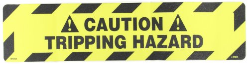 NMC WFS628 Walk On Floor Sign, Legend "!CAUTION! - TRIPPING HAZZARD", 24" Length x 6" Height, Pressure Sensitive Vinyl, Black on Yellow