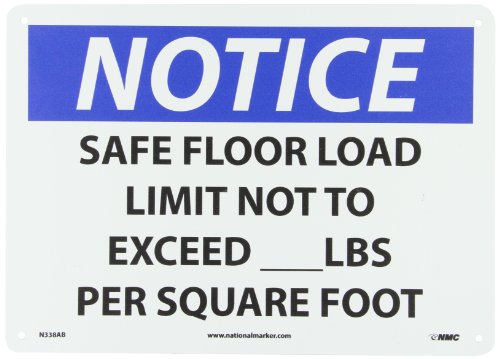 NMC N338AB NOTICE – SAFE FLOOR LOAD LIMIT NOT TO EXCEED ____ LBS. PER SQUARE FOOT – 14 in. x 10 in. Aluminum Notice Sign