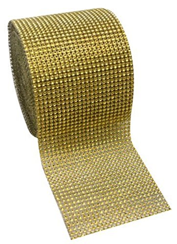 Super Z Outlet ZT684 Acrylic Rhinestone Diamond Fabric Ribbons, Gold
