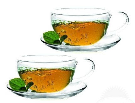 Sun's Tea 8oz Ultra Clear Tea/Coffee Cup & Clear Glass Saucer Set of 2,