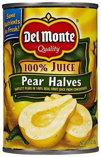 Del Monte Bartlett Pear Halves in 100% Real Fruit Juice, 15 oz, 12 pk