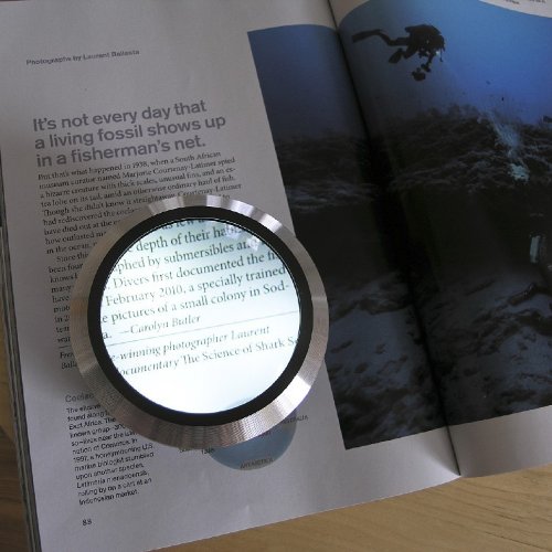 OPTICAL GLASS WITH ALUMINUM BASE LED LIGHTED MAGNIFIER PAPERWEIGHT WITH 4X MAGNIFICATION