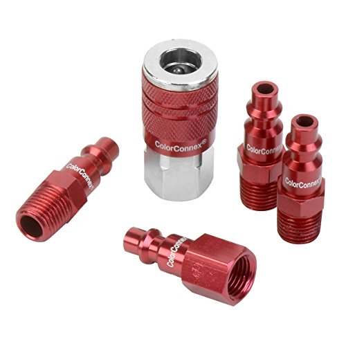 ColorConnex Coupler & Plug Kit (5 Piece), Industrial Type D, 1/4 in. NPT, Red - A73456D