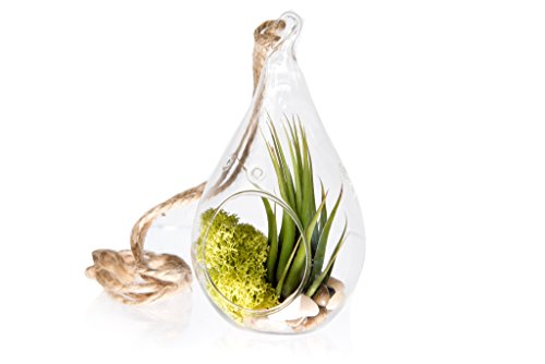 Hinterland Trading Air Plant Tillandsia Bromeliads Kit Teardrop Terrarium with Pebbles and Moss Great Little Houseplant