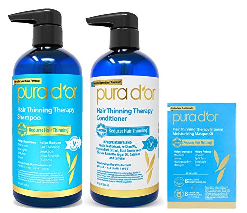 PURA D'OR Hair Thinning Therapy 3-piece Set, Shampoo, Conditioner & Masque for Best Results, Infused with Argan Oil, Biotin & Natural Ingredients, All Hair Types, Men & Women (Packaging may vary)