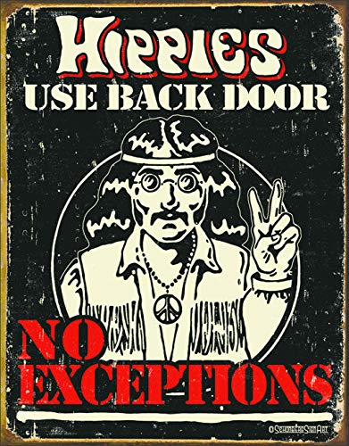 Desperate Enterprises Schonberg - Hippies Use Back Door Tin Sign, 12.5" W x 16" H