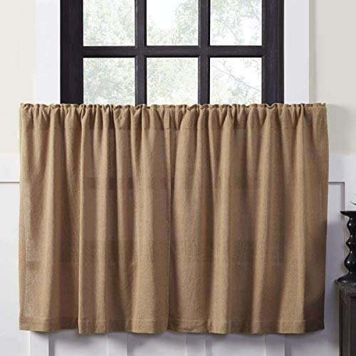 VHC Brands Burlap Natural 24" Rod Pocket Tier in Tan (Set of 2)