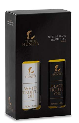 TruffleHunter Black & White Truffle Oil Gift Set (2 x 3.38 Oz) Extra Virgin Olive Oil Seasoning Garnish Gourmet Food Gift Basket Salad Dressing - Vegan, Kosher Gluten Free Nut Free, Vegetarian