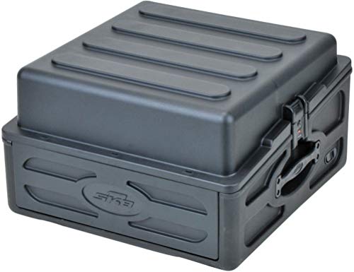 SKB Cases 1SKB-R102 10x2 Roto Rack/Mixer Console, 10U Slanted Rackmount on top, 2U rackmount in front, Steel Threaded Rails, Hard Lid and Doors, Side Access Ports for Cable Routing