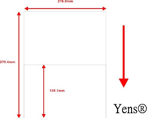 Yens Label 500 Shipping Labels (250 Sheets) White Blank Half Page Self Adhesive for Laser Inkjet Printer