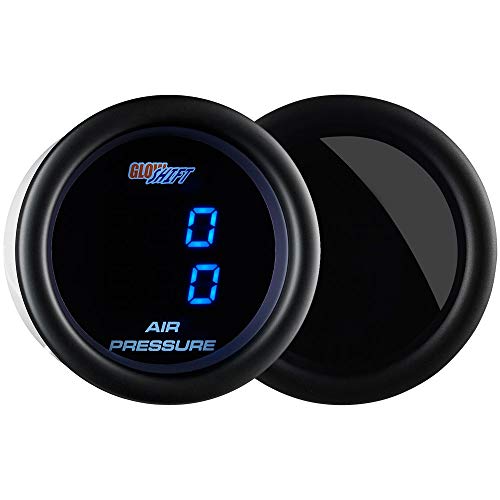 GlowShift Tinted 7 Series Dual Digital 220 PSI Air Pressure Gauge Kit - Includes 2 Electronic Sensors - Blue LED Display - Smoked Lens - for Air Ride Suspension Systems - 2-1/16" 52mm