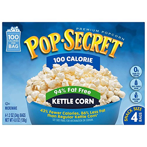 Pop Secret Popcorn, 94% Fat Free Kettle Corn 100 Calorie Microwave Bags, 4 Count Boxes (Pack of 6)