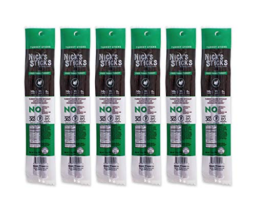 Nick's Sticks Free Range Turkey Snack Sticks - Gluten Free – Paleo, Keto, Whole30 Approved – No Sugar, Soy, Antibiotics or Hormones (6 – 1.7oz. Packages of 2 Sticks)