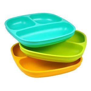 Re-Play Divided Plates, Aqua, Green, Sunny Yellow, 3-Count